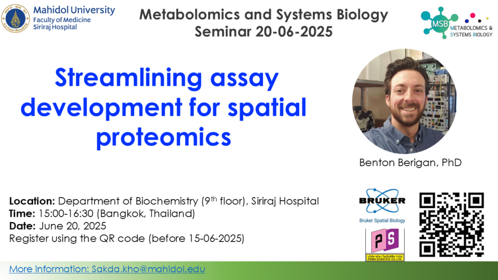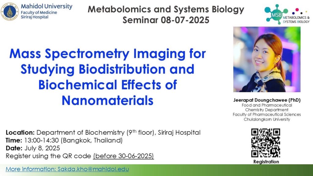 Metabolomics and Systems Biology Seminar 8-07-2025: Mass Spectrometry Imaging for Studying Biodistribution and Biochemical Effects of Nanomaterials, Jeerapat Doungchawee, PhD